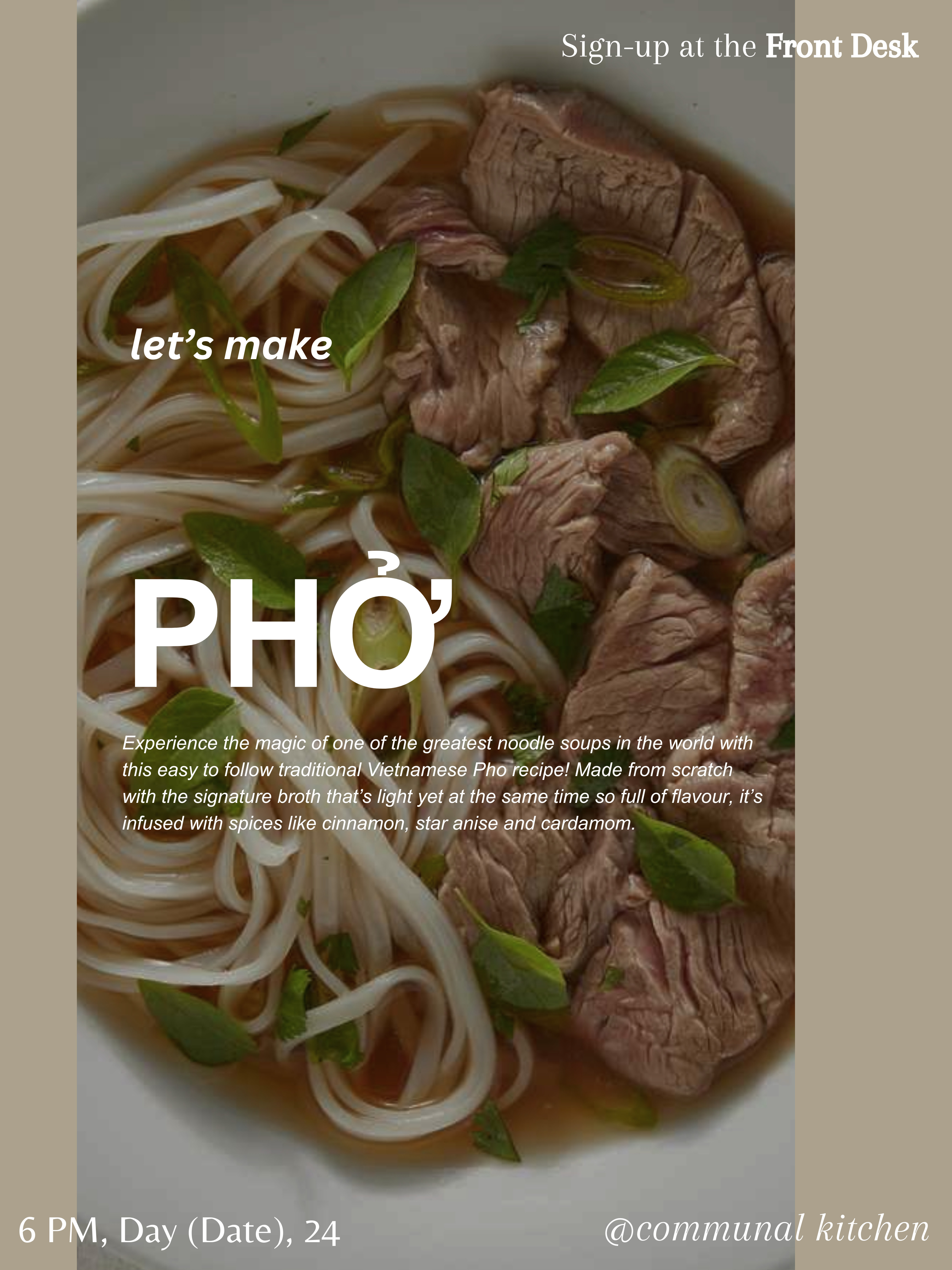Come and join us in the communal kitchen to make the greatest noodle soup in the world – Pho.